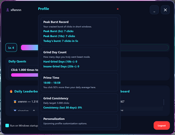 Discover when you click the most, how consistent you are, and how hard you really grind. -