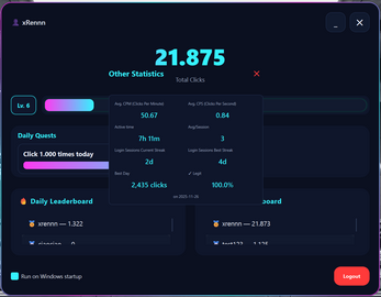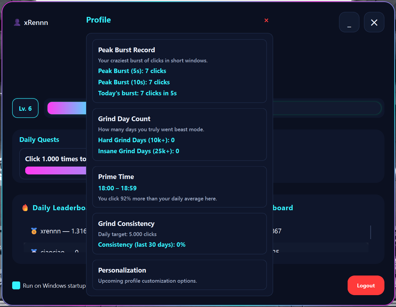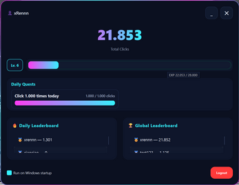 That’s the core idea: you don’t need to “play” the app – you just live at your PC, and ClickXP turns your daily activity into a grindable, competitive experience.