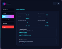 _evaluate_session_legitimacy()rejects or penalizes sessions with out-of-range duration, excessively high average CPS, unrealistic peaks, too many clicks per minute, suspicious variance, or implausible bursts; -