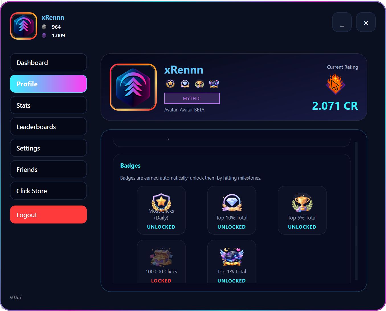 ClickXP v0.9.7– New Badges and Bug Fixes!